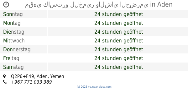 | Dienstag | 24 stunden geöffnet | |||||